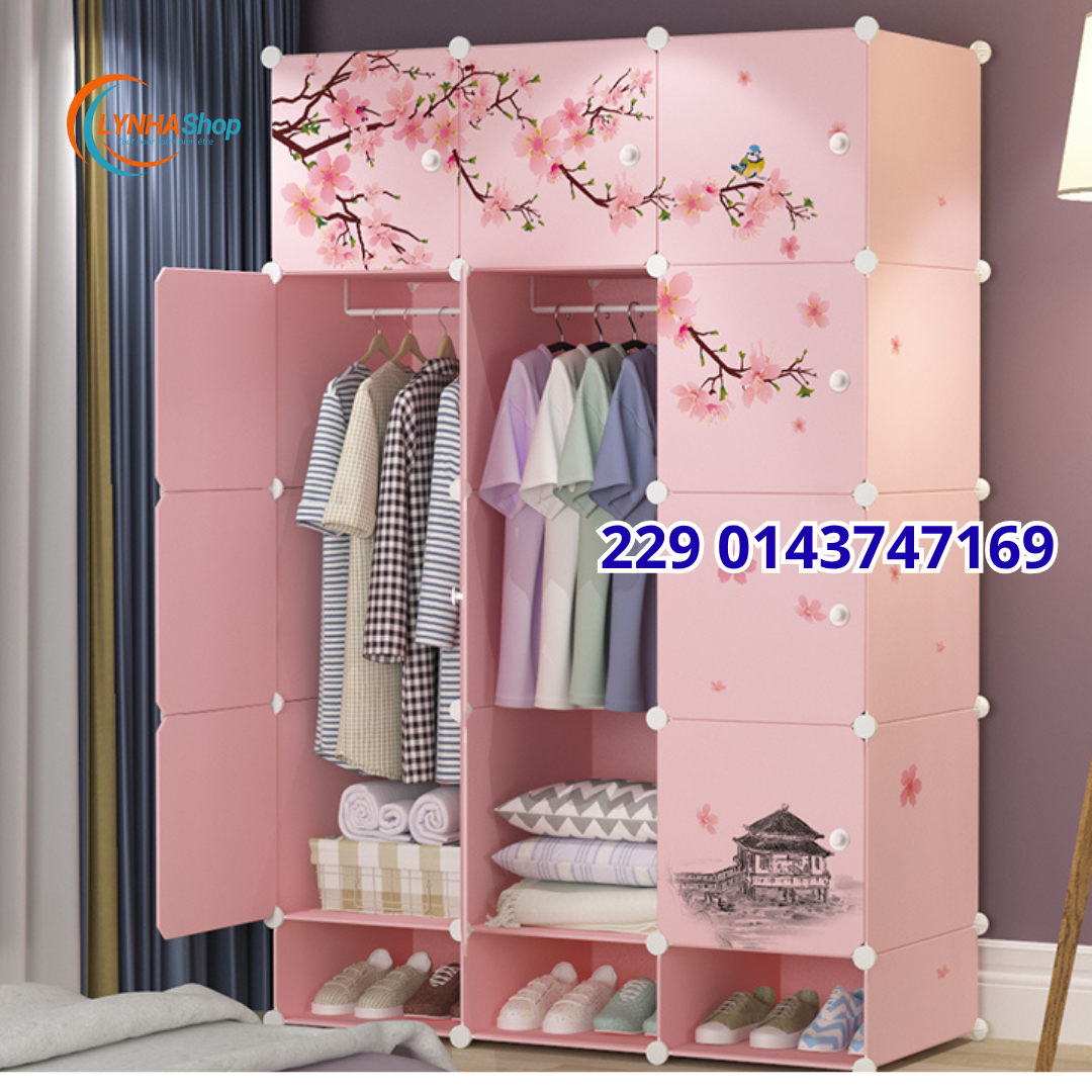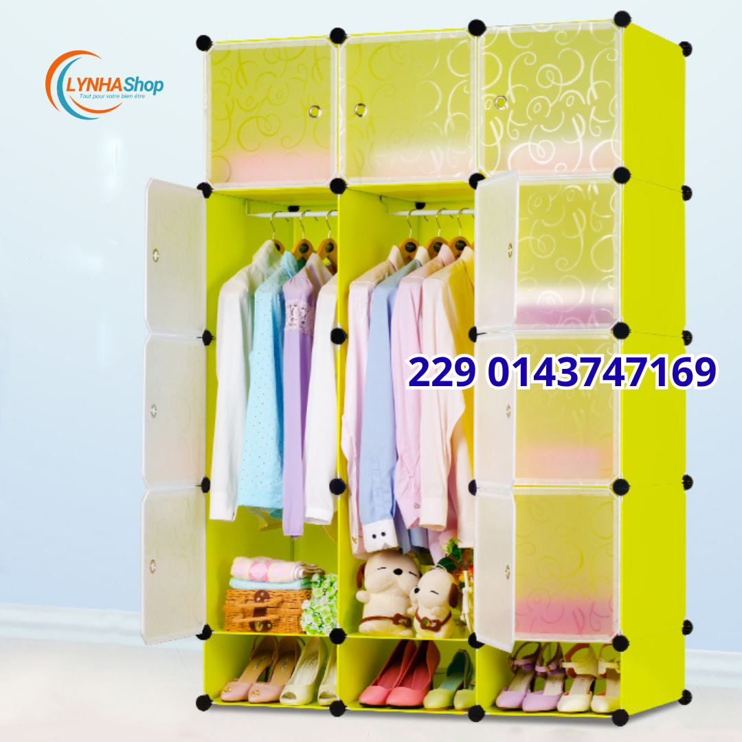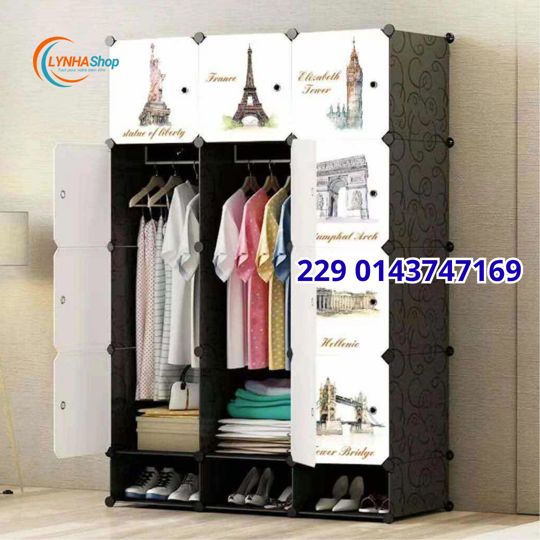 Solution Tout-en-Un : Avec 12 cubes et un espace penderie large, elle gère une garde-robe complète. Mieux encore, elle inclut un porte-chaussures intégré pour une organisation impeccable de la tête aux pieds.