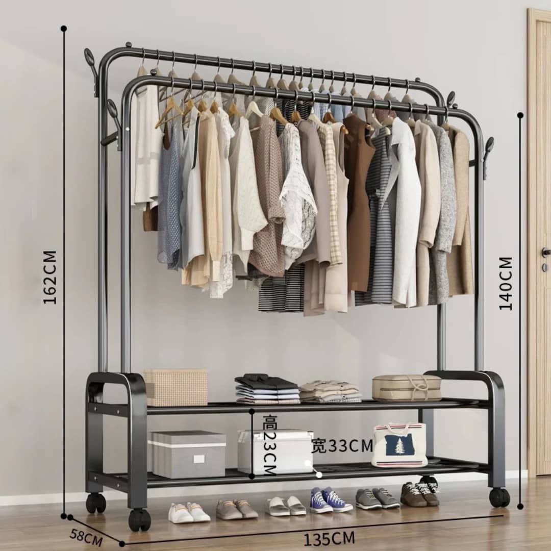 En plus de sa grande capacité, le Portant VIP est équipé de deux étagères inférieures, idéales pour ranger vos chaussures, sacs et autres accessoires. Grâce à ses roulettes solides, il est facilement déplaçable selon vos besoins, offrant ainsi une flexibilité optimale. Avec ses dimensions généreuses (135 cm de largeur, 58 cm de profondeur et 162 cm de hauteur), il offre un rangement spacieux tout en restant peu encombrant. Robuste et durable, il est conçu pour supporter une charge importante sans se déformer.